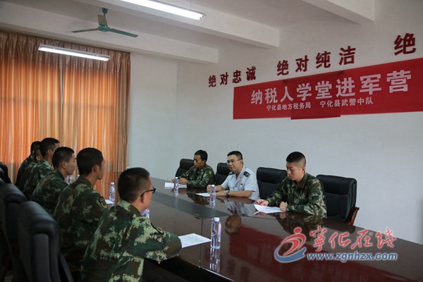 ??? 又到一年退伍季。8月28日,寧化縣地稅局組織稅收宣講志愿者走進寧化縣武警中隊,為即將退役的老兵們上了一堂稅收宣傳課。
