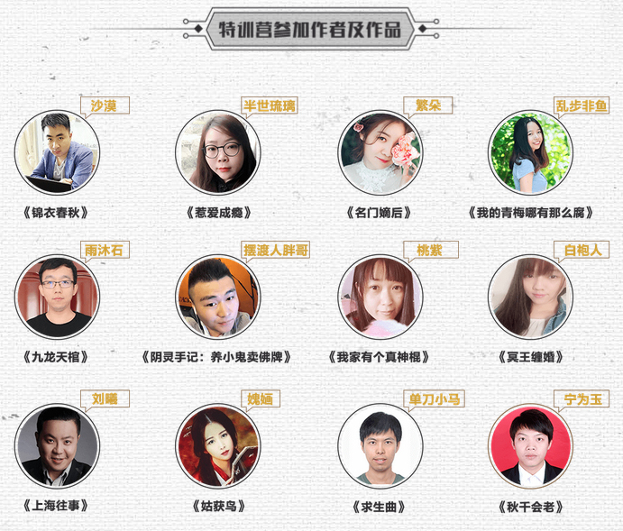 此次編劇特訓(xùn)主題為“都市懸疑”,類型化和男性向特征明確,一方面因為市場迫切歡迎該類型作品,其次也契合主辦雙方的優(yōu)勢增益,會產(chǎn)生“強強聯(lián)手”的效應(yīng)。針對主題,縱橫文學(xué)特別從平臺挑選了12名優(yōu)質(zhì)潛力網(wǎng)絡(luò)作家:例如擅長懸疑冒險的雨沐、擅長后宮懸疑的繁朵、擅長驚悚懸疑的姽婳、擅長歷史懸疑的沙漠、還有擅長二次元類型的桃紫等,成為了“郭靖宇編劇特訓(xùn)營”的首期學(xué)員。