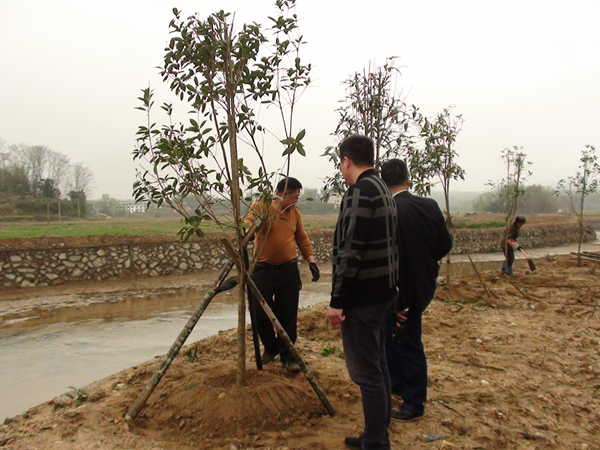 在植樹現場,一片熱火朝天,整個勞動場面繁忙而有序,很快便在河長制管理的河段岸邊留下了一行行新綠。