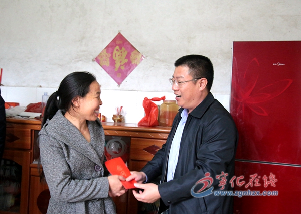 ??? 天寒人心暖。春節將至,困難群眾的生活牽動著縣領導的心。連日來,寧化縣領導余建地、姚文輝、潘閩生、李平生、劉小彥等深入各自掛包鄉鎮的精準扶貧對象家中,訪困問需、訪貧問計,了解他們生產生活狀況及春節、過冬物資準備情況,和他們共同探討脫貧致富的路子,向他們送上新春祝福和慰問金。
