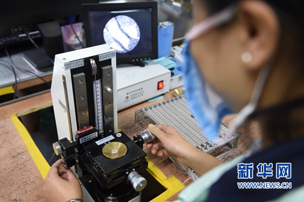 9月11日,李九香在寧化縣以產業扶貧為特色的三明福特科光電有限公司生產車間工作。新華社記者 林善傳 攝