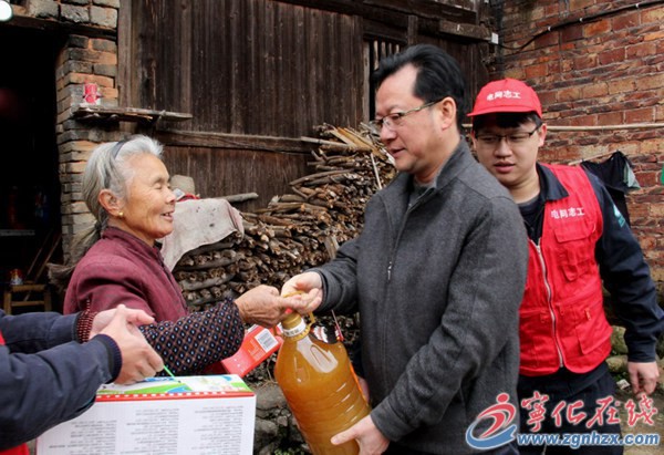 ??? 溫一黃一行先后來到“精準扶貧”結對幫扶對象邱加龍、邱恒金等46戶特困戶家里,給幫扶5戶特困戶每戶送去了春節慰問金和慰問品。該公司電網志愿者開展“暖冬愛心行動”,為該村老人們送去了一批電熱餅。他們還為當地村民貼春聯、搞衛生、送溫暖等服務活動。