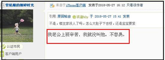 她答復(fù)說:老公上班很辛苦,沒叫他