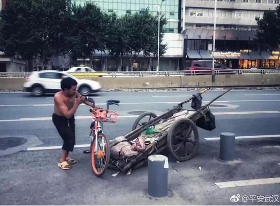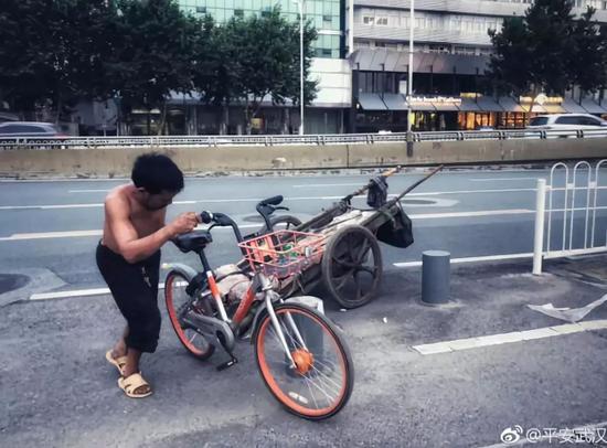 殘疾大叔零回報自愿搬運單車 稱只為幫助大家(圖)