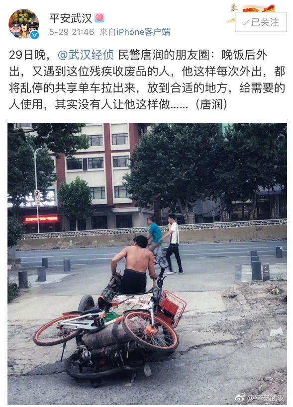原標(biāo)題:殘疾大叔零回報自愿搬運單車 他說只為幫助大家