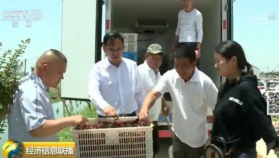 田里是養殖戶拉網捕蝦,岸邊是客商翹首以盼。小龍蝦剛剛被拉上來,搶購就開始了。一番討價還價,這個水產養殖合作社當天捕撈的1000多斤小龍蝦全部被客商買走。
