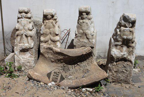 四尊螭首高90-100厘米不等,由漢白玉雕刻而成 攝/法制晚報·看法新聞記者 崔毅飛