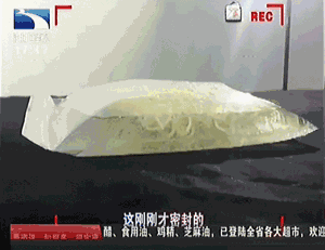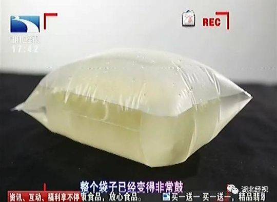 可以明顯看到,剛剛才密封的塑料袋,迅速膨脹起來