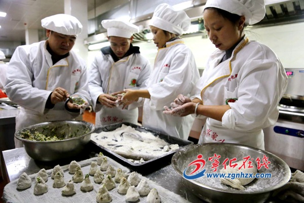 “搟皮、剁餡、捏皮、包裹,看似簡單,做起來不容易,要邊學邊揣摩……”6月5日,寧化客家小吃177期免費培訓班培訓現場,“中國烹飪大師”孫福安不厭其煩地教46名學員制作燒麥,貧困戶張曉琳學得特別認真,燒麥包得又快又好,越包越有手感。