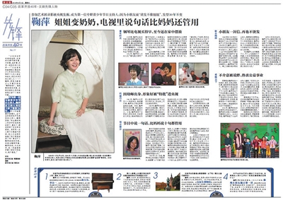 作為我國第一位專職青少年節目主持人,34年以來,鞠萍陪伴了無數孩子的成長,一代又一代的少兒觀眾都是看著《七巧板》和《大風車》長大的。從10歲開始,她就參加了中央人民廣播電臺的少年廣播合唱團,跟著李谷一、蔣大為等老藝術家合唱操練,她說自己開拓了眼界,也真正感受到藝術家身上應該有的風范。私下里鞠萍也一貫低調謙虛,她說,“時代雖然不斷在發展變化,我也從來不會覺得自己有什么特殊的地方,保持自己最好的狀態,投入自己一直喜歡的事業,這樣就挺好的。”