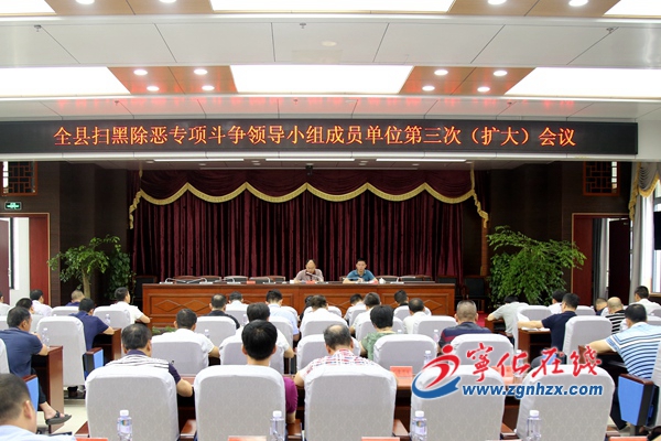 8月3日,寧化召開全縣掃黑除惡專項斗爭領導小組成員單位第三次(擴大)會議。縣委常委、政法委書記黃樹榮,副縣長、公安局局長謝忠出席。