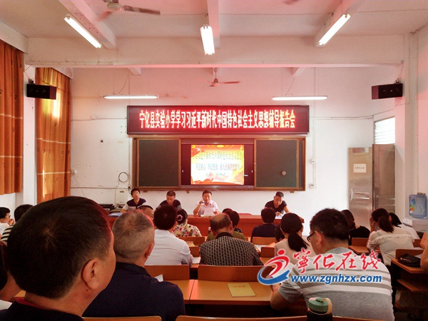 ? ? 8月29日,寧化縣實驗小學黨支部書記、校長伍和平為正在參加暑期集中政治學習的全體教職員工作了《不忘初心,牢記使命,做人民滿意的教師》專題輔導講座。