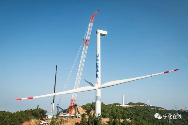 寧化雞公崠風(fēng)電項(xiàng)目首臺風(fēng)機(jī)吊裝完成