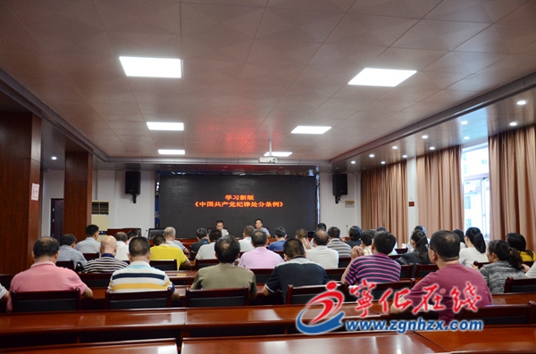 ? ? 9月19日下午,中共寧化縣交通運輸局黨委組織全體黨員干部職工共60余人集中學習新版《中國共產黨紀律處分條例》。