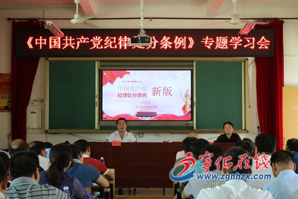 ? ? 9月25日,寧化縣教育局《中國共產黨紀律處分條例》專題學習會在寧化城東中學召開,教育局班子成員、全縣各校校(園)長、黨支部書記和局機關所有黨員干部等100余人參加學習。