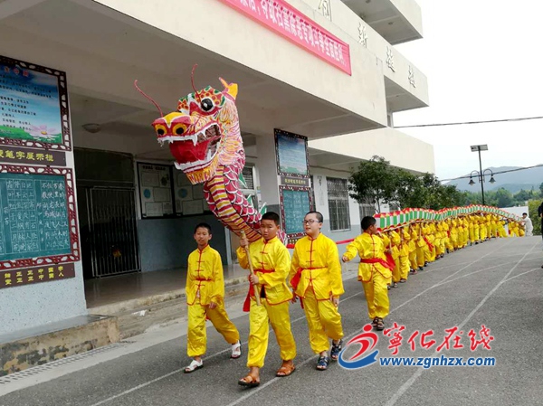 ? ? 9月4日,沉寂了一個暑假的曹坊中心學校校園沸騰了,126名一年級新生在父母的陪伴下邁入學校。高年級學生帶來的曹坊板凳龍、特色腰鼓等表演,為新生們送上了別出心裁的“開學禮”。