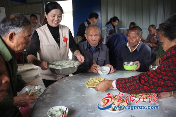 ? ? 寧化縣紅十字會組織紅十字志愿者,聯合三明工貿學校、城東中學志愿者一起來到城郊鄉敬老院,為26位老人包水餃過重陽,送上節日禮物和祝福。(邱長林)