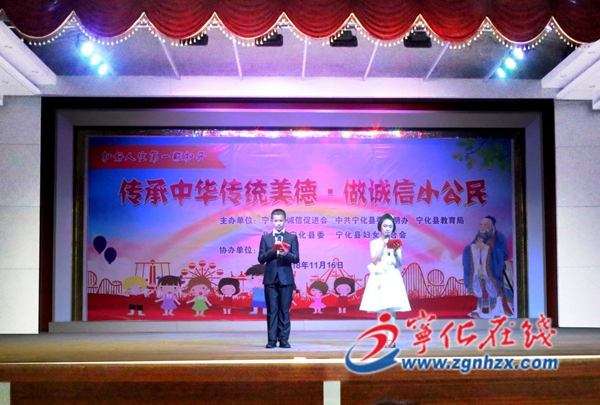 ? ? 11月16日,由寧化縣誠(chéng)信促進(jìn)會(huì)、縣委文明辦、縣教育局、團(tuán)縣委、縣婦聯(lián)主辦,寧化六中協(xié)辦的“傳承中華傳統(tǒng)美德?做誠(chéng)信小公民”演講比賽在寧化六中禮堂舉行。