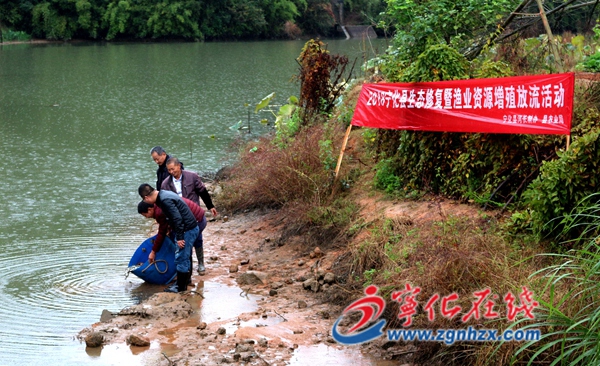 ? ? 日前,寧化縣河長制辦聯合縣農業局舉辦2018年寧化縣生態修復暨漁業資源增殖放流活動。城郊鄉組織干部群眾在西溪瓦莊村、茶湖江村、社下村,東溪高塹村、連屋村不同河段共投放30萬尾優質魚苗,助推河湖生態恢復。