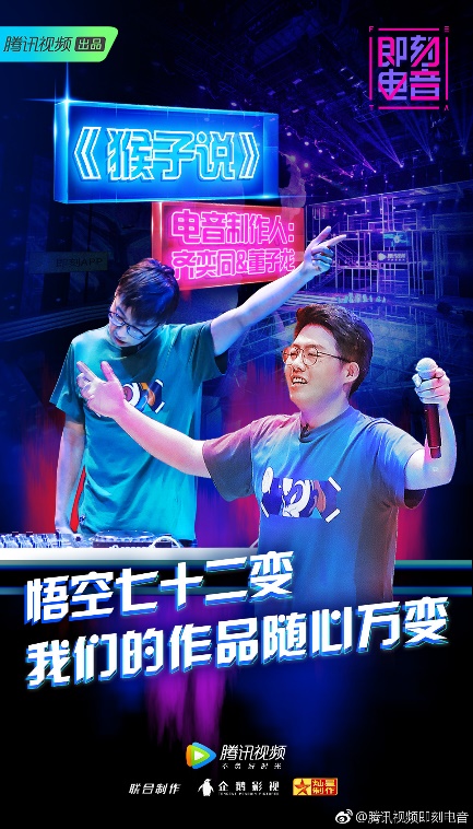 12月8日晚8點,由騰訊視頻出品,企鵝影視與燦星制作聯合打造的中國首當電子音樂制作人競演秀《即刻電音》第二期繼續燃情上線。張藝興迎來實力強勁制作人,大談M-POP。尚雯婕喜獲極致獨立電子作品,喜愛之情溢于言表。大張偉迎來“真香三殺”,俘獲三組“寶藏制作人”。其中,一曲《猴子說》,用極富中國元素電子音樂表演,讓很多觀眾都表示“原來電音還能這么玩”,“以前沒多接觸過,看了節目后循環聽歌單,發現電音真是‘充電補血’”!