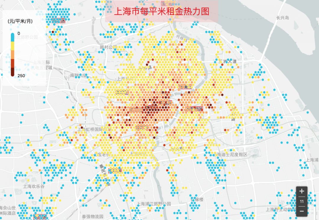 上海市只要地鐵在700以內,每平米租金變化不大,700以上租金開始明顯下降。