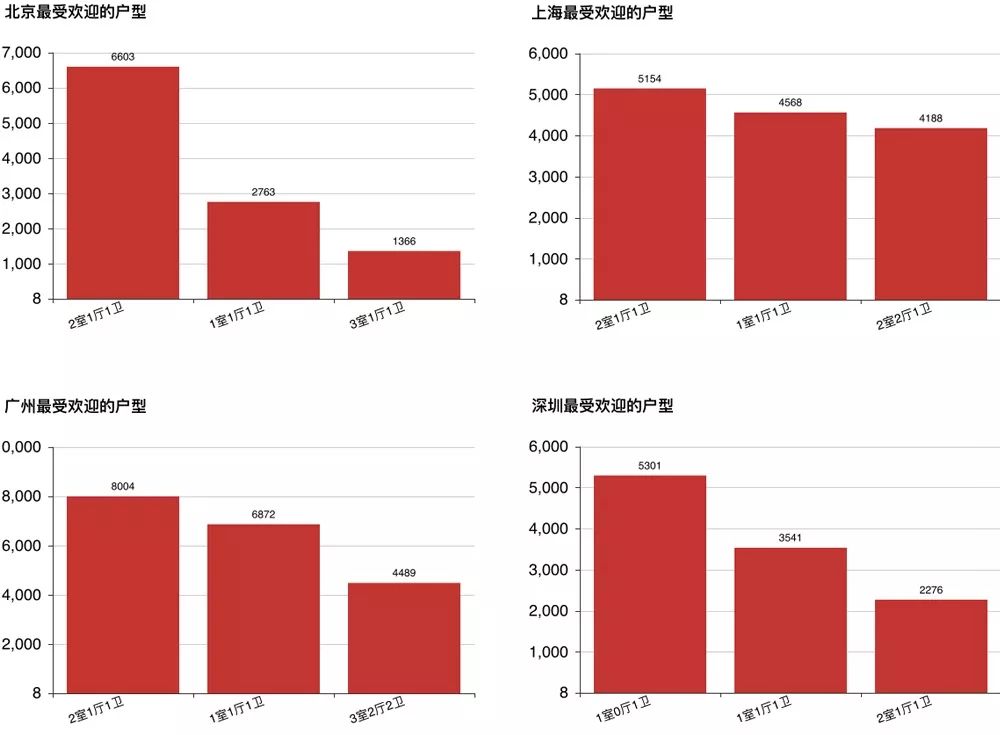 我們統計了北上廣深各城市房源最多的3種戶型。