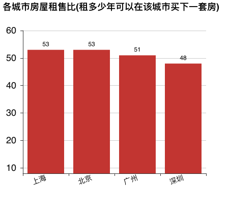 可見,按照北上廣深當前的房價,50年左右的租金可以在城市買下一套房。其中深圳最低,只需要48年(也就意味著深圳的小伙伴們心頭最痛)。