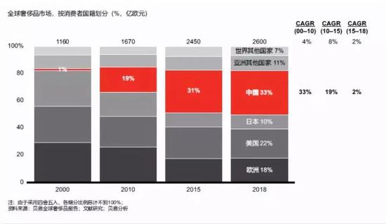 無論如何,中國消費者在全球奢侈品市場的消費不容忽視。根據(jù)貝恩提供的數(shù)據(jù),中國購買者的奢侈品消費總額已占全球市場份額的33%,也就是說,中國人在2018年買走了全球差不多三分之一的奢侈品。而3年前這個比例是31%,18年前這個數(shù)字只有1%。