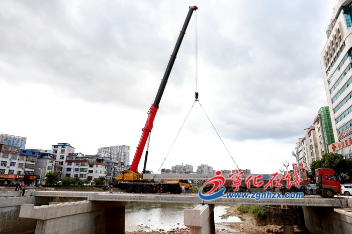 ? ? ?8月26日,在寧化城區東門橋擴寬改建現場,工人們正忙著吊梁施工。東門橋建成于1989年,原橋長80米、寬16.6米,是市民出行重要通道。此次升級改造本著厲行節約原則,保留原橋橋墩,橋面向上游拓寬8.4米,兩側各預留3米人行道。工程預計今年國慶前建成通車,將極大緩解該路段交通壓力。(范日樑 黃尉峰 攝影報道)??