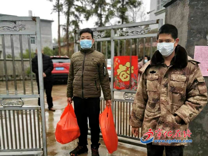 “叔,你要我幫忙買的東西到了,你開門來拿吧。”2月5日一大早,寧化縣泉上鎮羅李村黨員服務隊的年輕隊員賴春水提著一袋土豆、一袋排骨,來到湖北返鄉人員賴某家院子口,為他們送上生活物資。