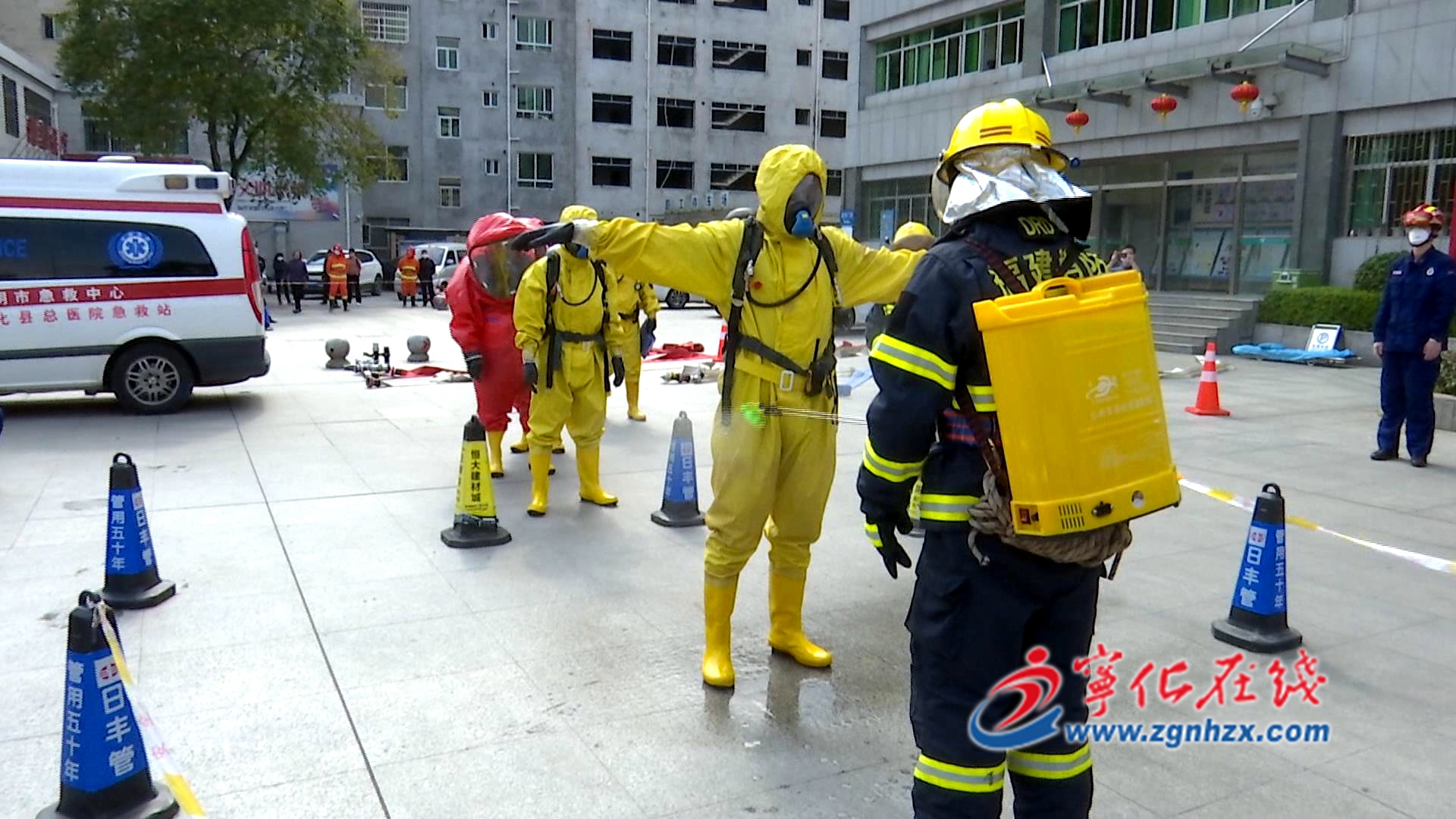 近日,寧化縣翠江消防救援站在縣總醫院開展疫情期間專項實戰演練。?
