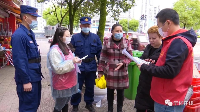 志愿者們分組行動,通過發放宣傳單及文明勸導等形式,勸導客家邊貿城商戶在疫情期間既要做好個人防范,也要謹防電信詐騙,注意用火用電,做好消防安全,并引導商戶關注“平安三明”、“長安寧化”等微信公眾號。