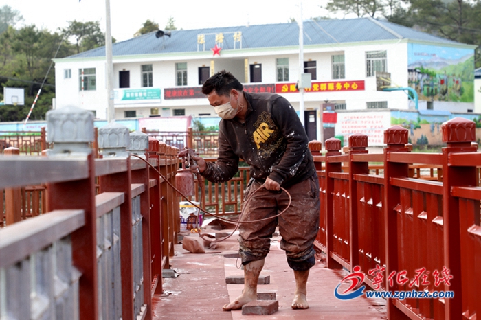 4月13日,在寧化石壁鎮陳塘農民休閑公園施工現場,工作人員正在進行噴漆作業。這一項目于今年1月開工建設,總投資83萬元,規劃用地面積20余畝,主要建設荷園休閑步道、觀景涼亭等。該項目目前已完成投資70余萬元,預計5月中旬全部完工。公園建成后,將結合陳塘紅軍醫院、陳塘紅軍革命烈士紀念碑等紅色旅游資源,帶動周邊鄉村旅游發展。(記者 日樑 竟宇 林勇 坤澤 鵬翔)