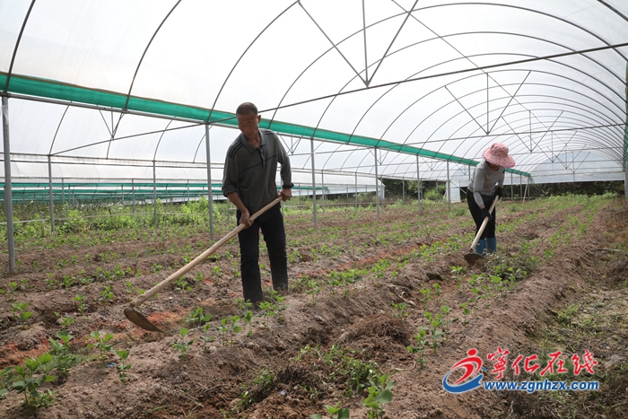 “我有空時(shí)就會(huì)進(jìn)基地干活,每年也有六千多元收入,并不會(huì)誤了自家農(nóng)活……”5月6日,寧化淮土鎮(zhèn)禾坑村雕鑫生態(tài)種養(yǎng)合作社溫室大棚內(nèi),村民廖善求正在嫩綠的豆苗地里鋤草。