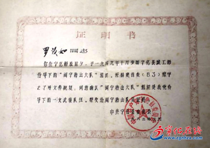 1948年9月11日,邵敦、羅澄清在寧化淮土青平村后龍山樹林里秘密召開組建閩寧游擊大隊籌備會議,選舉羅世行為隊長、羅澄清為指導員,開始有計劃地發展壯大游擊隊伍。那次會議,時年15歲的羅茂如也參加了。
