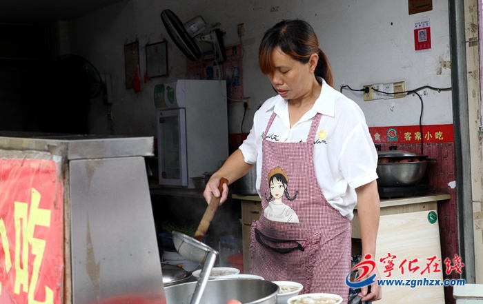 6月11日,寧化縣中沙鄉石門村村民夏金穩在照料完豬仔后,轉身來到位于中沙鄉街上的清香小吃店,給妻子吳清香幫廚,里里外外照顧客人,兩人忙得不亦樂乎。