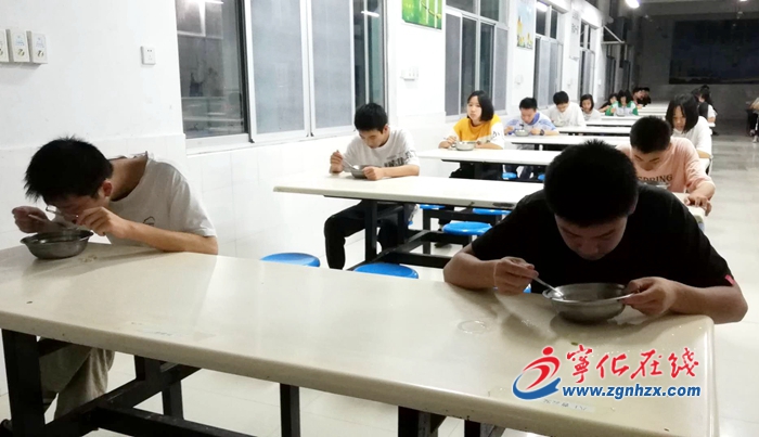 “下完晚自習,能在食堂喝上營養湯,好滿足?!薄懊刻焱砩隙加袪I養湯喝,真暖心?!薄?月21日晚,寧化縣民族學校九年級寄宿生在食堂喝完營養湯后,個個喜笑顏開。