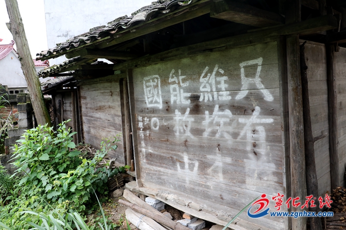 里坑村保留在谷倉(cāng)上的紅軍標(biāo)語