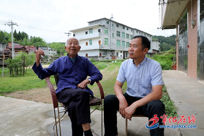 游功道老人(左)回憶紅色歷史