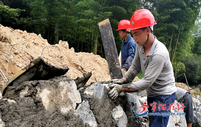 7月3日,在寧化縣翠郊灌區節水配套改造工程楊河村段施工現場,工人正搶抓晴好天氣,緊張有序地施工。