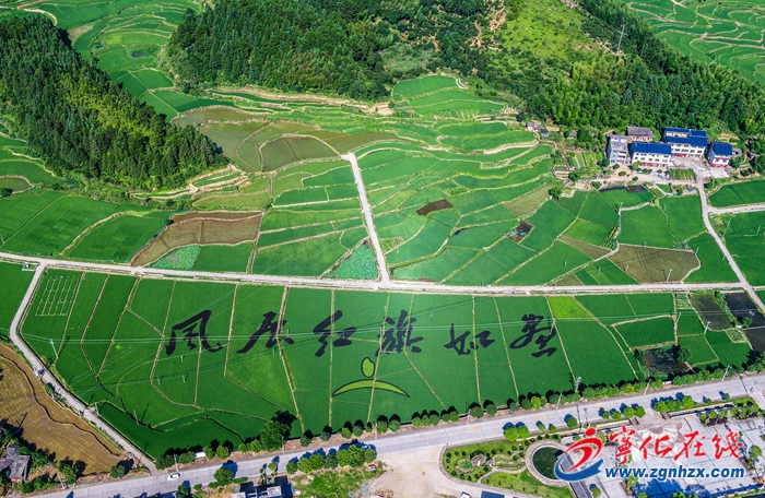 7月13日,在寧化縣河龍鄉(xiāng)河龍貢米品種篩選基地,一幅“風展紅旗如畫”稻田彩繪已初步顯現。