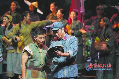 “保衛蘇區有責任,禾口淮土比參軍,禾口擴紅一千個,淮土一千多兩人。”當年,寧化人民展開擴紅競賽。這一傳唱至今的歌謠,唱出了當年百姓踴躍加入紅軍的情形。這首歌謠,也被主創們搬上了《風展紅旗如畫》的舞臺,配上小號手“盧長生”活潑俏皮的表演,令人記憶深刻。