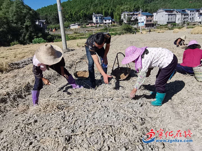 10月28日,在寧化縣城南鎮(zhèn)水口村中藥“百草園”研試基地,近10名工人正忙著種植黃精。只見他們用特制的手耙將平整好的農(nóng)田“梳”出道道淺溝,再把外觀如生姜般的黃精塊放到溝里,并覆蓋上土層,就算完成了種植。