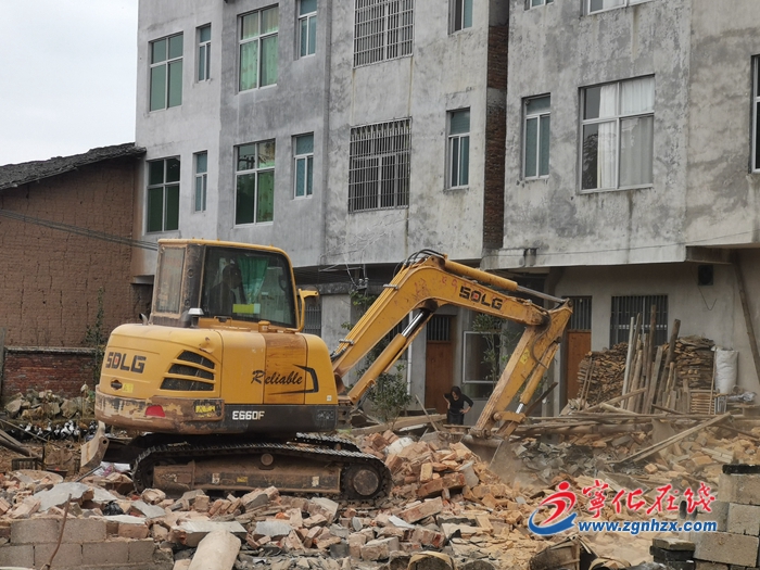 近日,在寧化縣淮土鎮鳳山村白園里安置小區建設施工現場,伴隨著轟鳴的機器作業聲,一幢幢閑置土房、烤煙房、旱廁、豬牛欄等附屬設施被有序拆除。目前已拆除30余處,剩余1處正有序推進中。