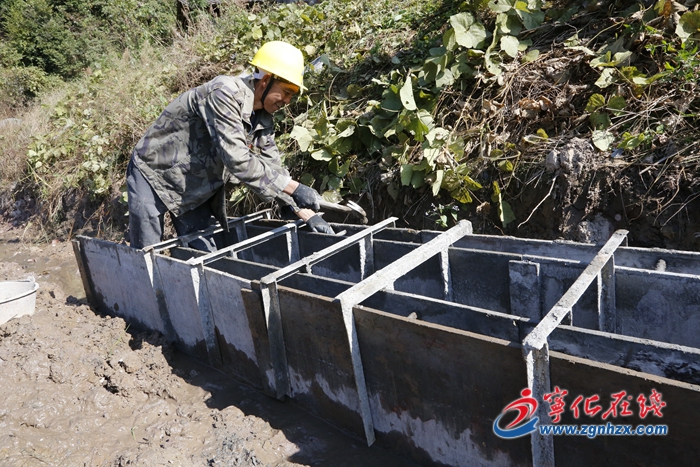 11月6日,在寧化縣安河重點中型灌區節水配套改造工程安遠鎮巖前片施工現場,工人正忙著釘模版、拌水泥……現場一片熱火朝天的施工景象。