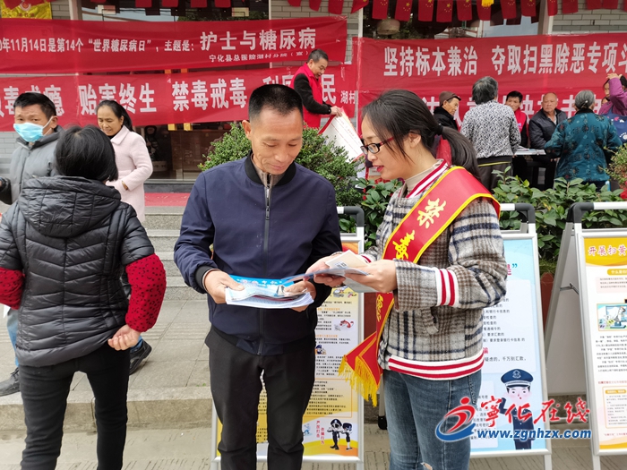 寧化縣河龍鄉攜手衛生院、司法所,組織志愿者們在圩日發放禁毒防艾、普法宣傳、移風易俗等宣傳材料,并走訪慰問了見義勇為人員家屬,送上500元慰問金和反詐掛歷等慰問品。
