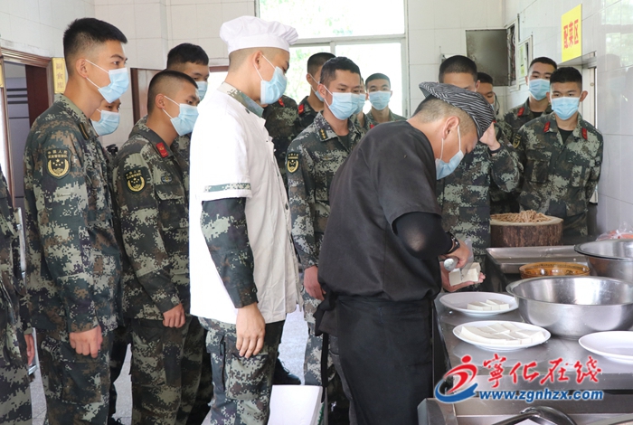 國(guó)慶期間,武警寧化中隊(duì)開展了“駐地紅軍餐進(jìn)軍營(yíng)”活動(dòng),官兵們分工合作,配合廚師燒出了一道道帶著紅色記憶的“紅軍餐”。這些從歷史深處走來的粗茶淡飯,將紅軍堅(jiān)定的信仰、不怕艱難險(xiǎn)阻的精神和老一輩的愛國(guó)情懷深植于官兵們的心靈。