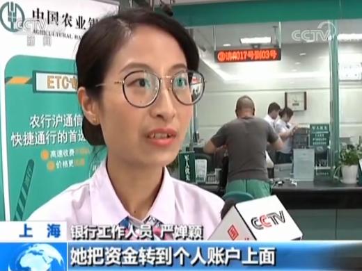 銀行工作人員 嚴(yán)嬋穎:當(dāng)時(shí)我們是發(fā)現(xiàn)她把資金轉(zhuǎn)入個(gè)人賬戶上,非??梢伞N覀儾樵兞诉@個(gè)賬戶的明細(xì),發(fā)現(xiàn)是有一筆資金進(jìn)去,一筆資金(馬上)出來。