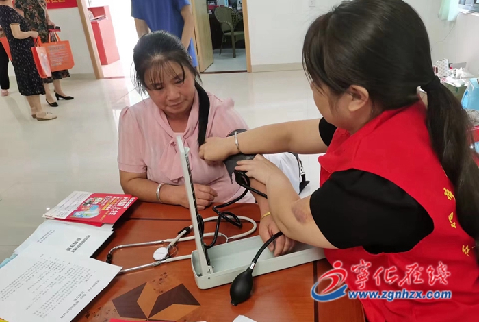 志愿者在活動現場還提供健康咨詢和免費量血壓服務。
