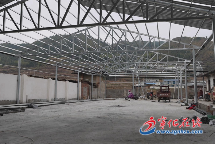 在濟村鄉農貿市場重建項目現場,記者看到農貿市場的主體輕鋼框架搭建、地面硬化已經完成,工人正進行管理房的搭建和彩鋼瓦的安裝。